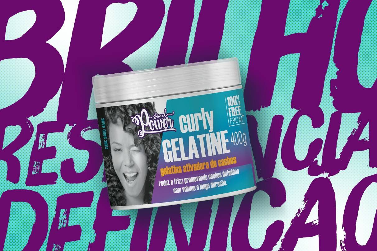 Outra dica é a Curly Gelatine: essa gelatina possui formulação enriquecida com queratina vegetal, que dá brilho e resistência aos fios. É mais consistente e ajuda a dar uma super definição.